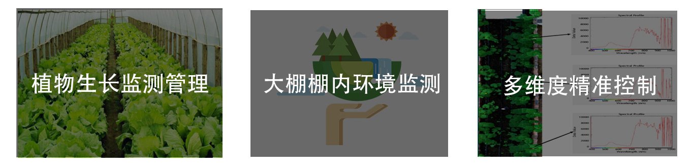 光谱成像技术既可以获取地物目标的两维空间几何图像,同时获取地物目标的光谱信息,其中,两维图像信息可以实现地物目标的影像识别,光谱信息则直接反应了地物目标的属性,可以实现地物的属性探测及定量化分析。轻小型高光谱成像仪可搭载自动巡查机器人,移动式推扫成像,实现大棚种植作物的高质量光谱数据采集后续进行高光谱数据处理,分析作物长势及健康状况,