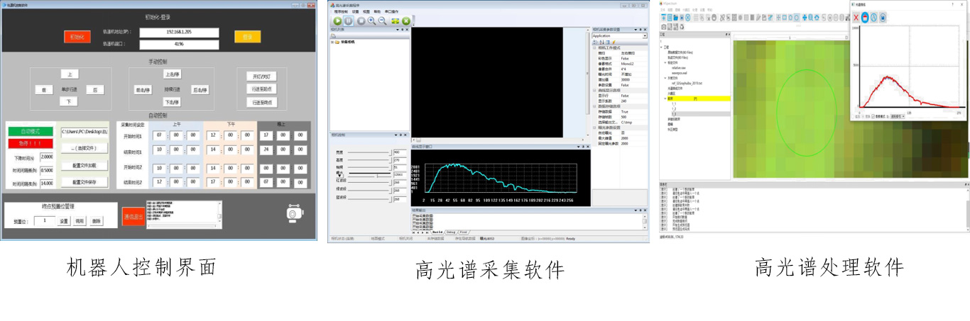 高光谱数据采集软件主要实现高光谱相机的参数配置、数据显示,与轨道机器人控制软件配合实现数据的自动同步采集。