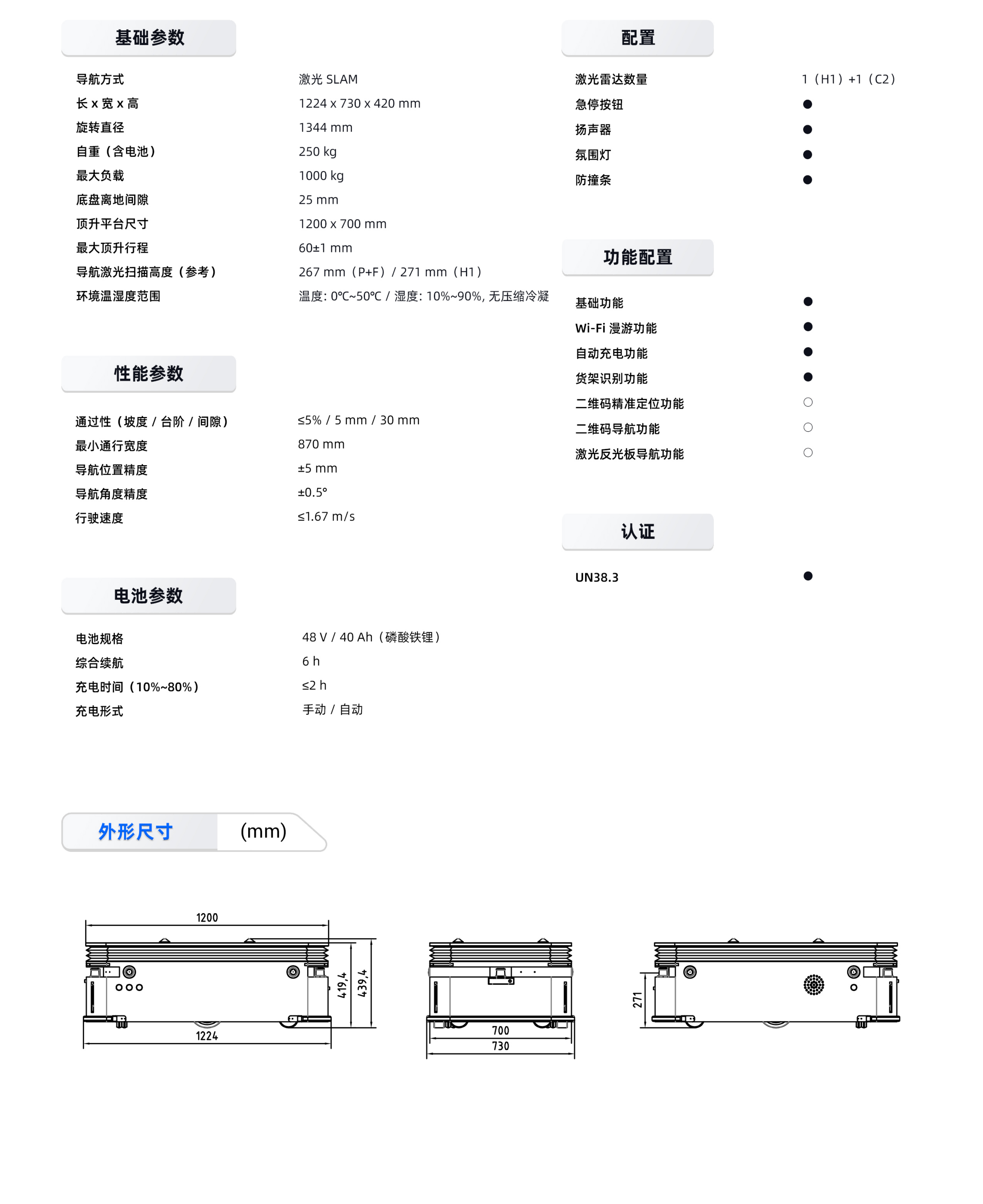 大容量电池,6 h 续航,满足工厂连续搬运需求。